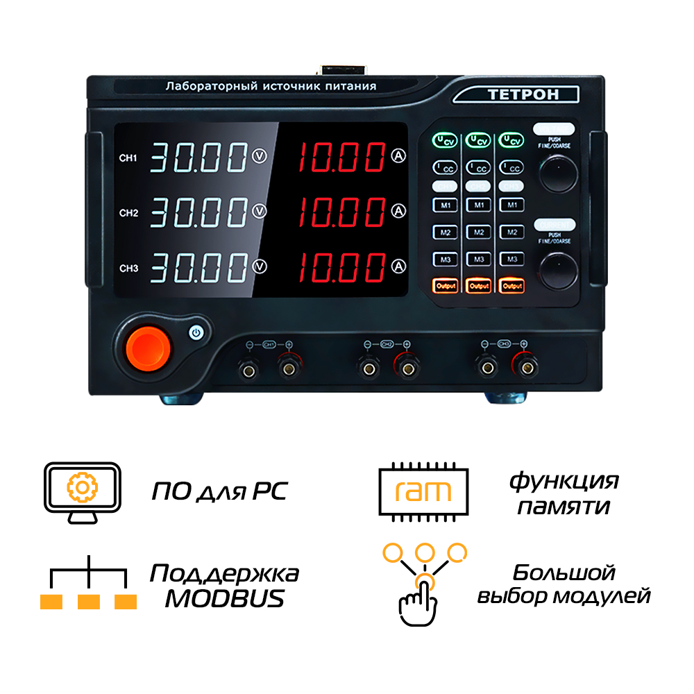 0 – 100 В, 0 - 3 А, 300 Вт |